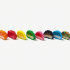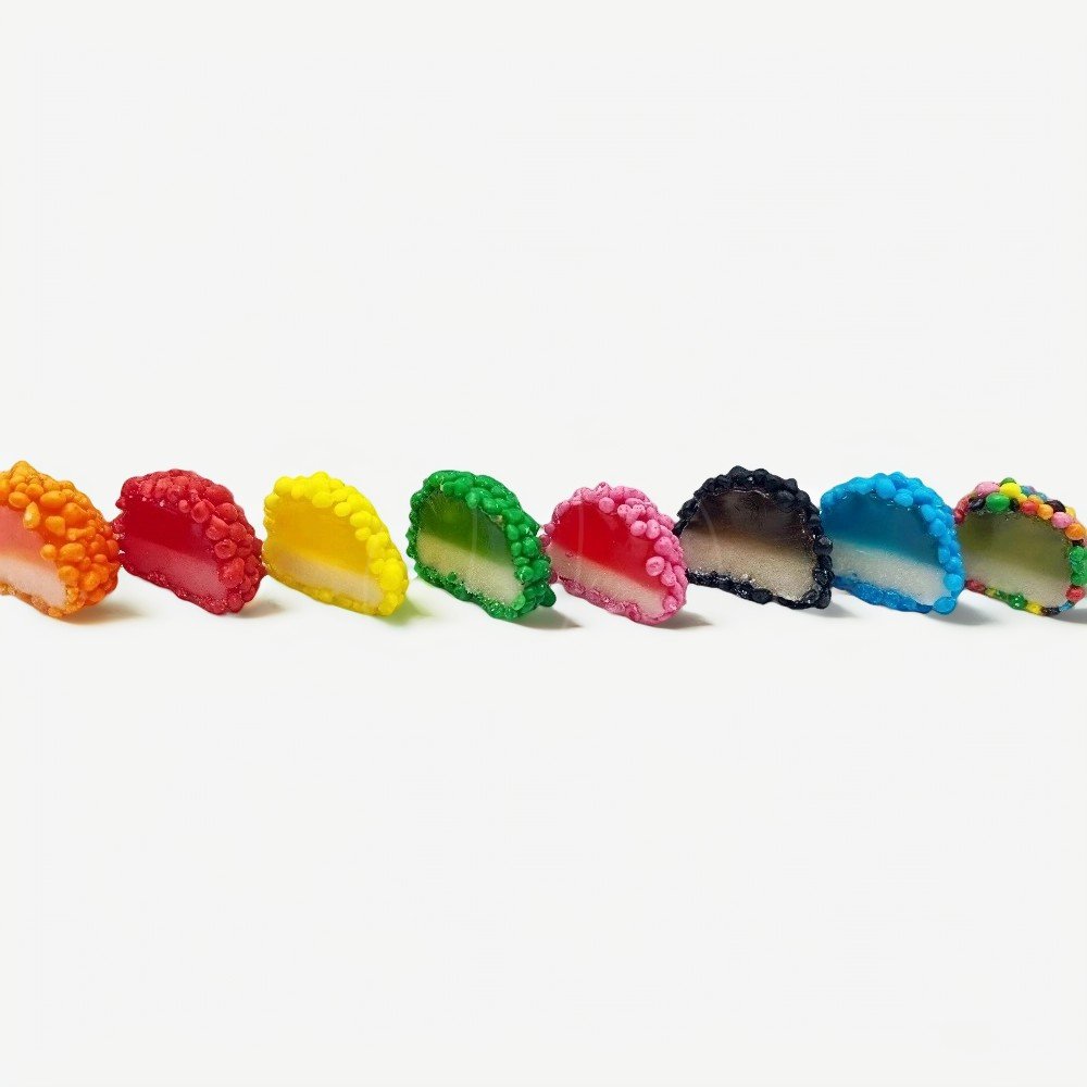 | Состав | сахар, сироп глюкозы, вода, декстроза, рисовая мука, желатин, кислоты: яблочная кислота, гидромалат натрия, инвертный сахарный сироп, желирующий агент: пектин, регулятор кислотности: лимонная кислота, ароматизаторы идентичные натуральным, глазирующие вещества: гуммиарабик, красители: тартразин, кармуазин, красный очаровательный АС, бриллиантовый синий FCF, сульфитно-аммиачная карамель, растительный углерод |
