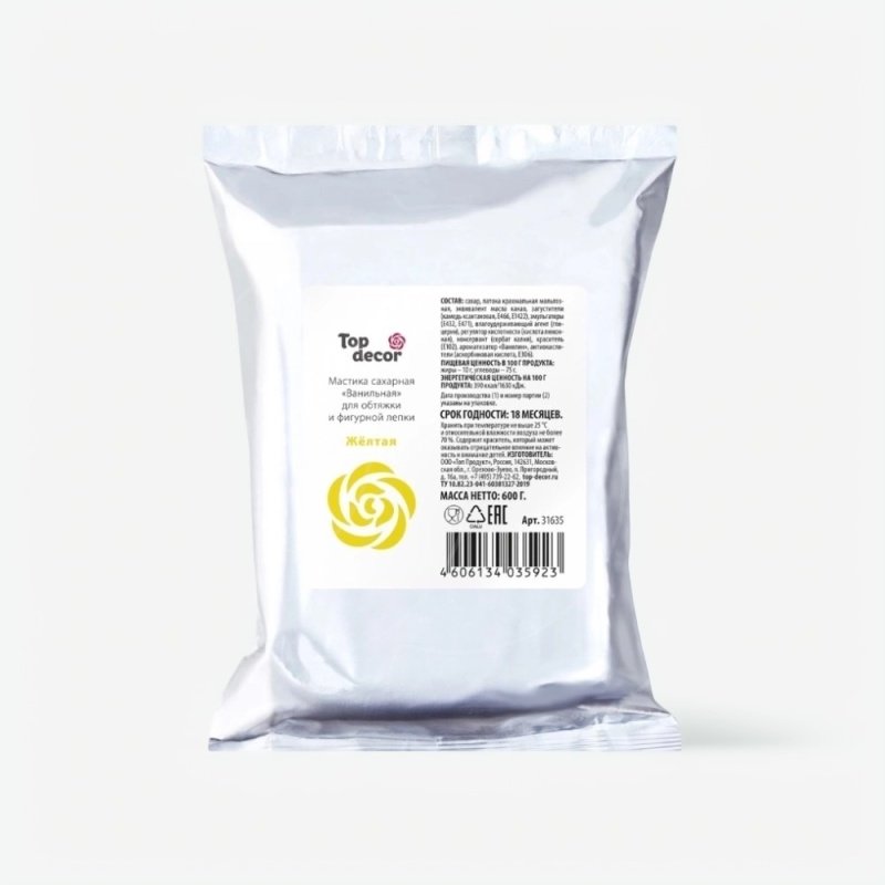 Доставка Мастика кондитерская ванильная Top Decor "Жёлтая" 600 г из магазина в вашем городе: