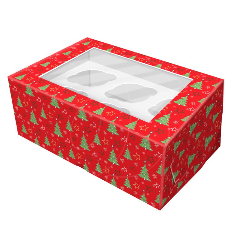 Доставка Коробка на 6 капкейков с окном "Ёлочки" 25х15х7 см из магазина в вашем городе:
