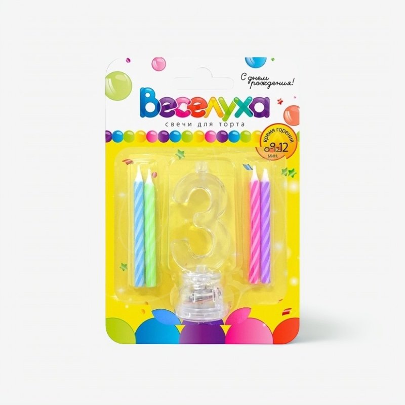 Доставка Набор тортовых классических свечей с мигающим держателем Цифра "3" из магазина в вашем городе:
