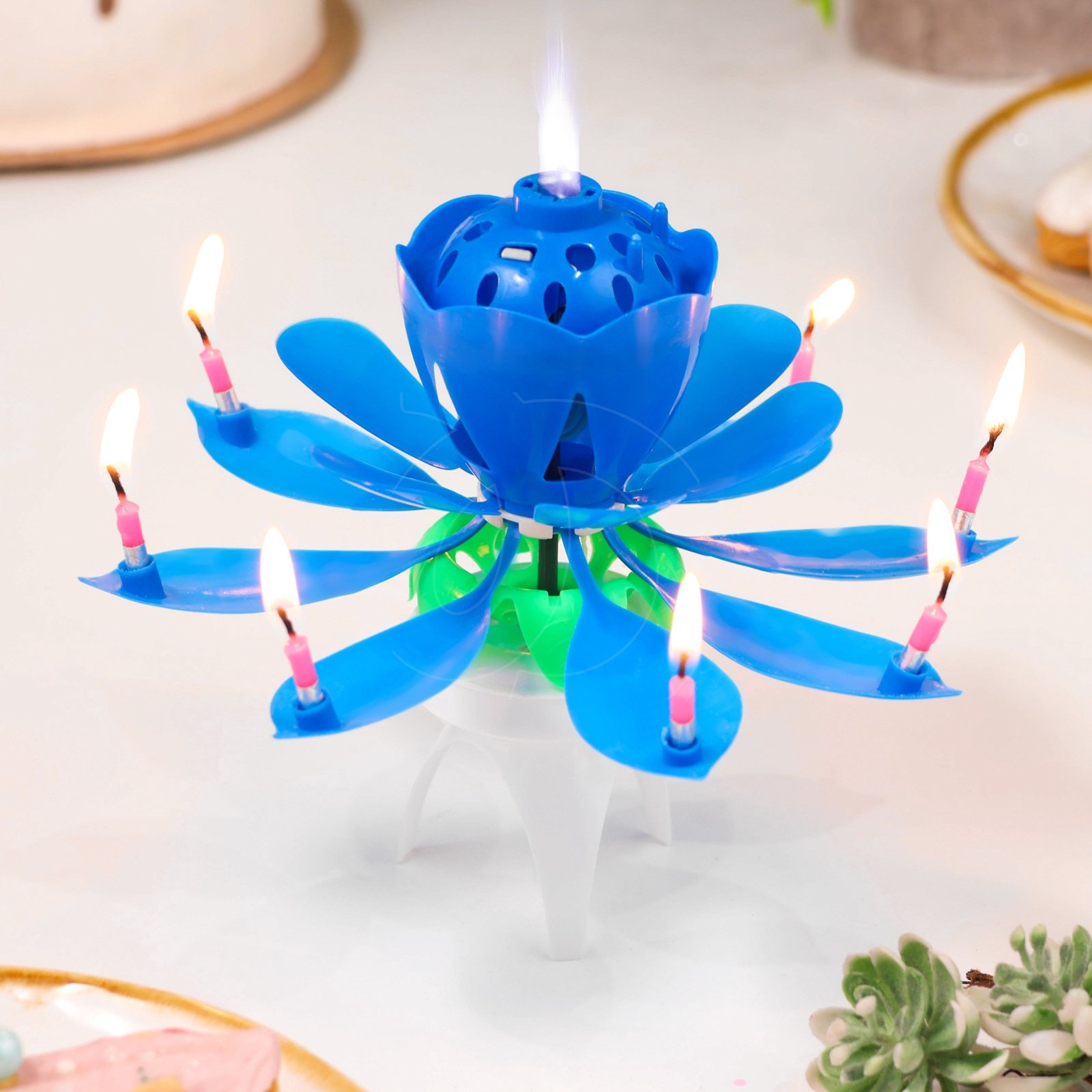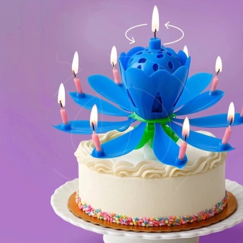 После этого цветок раскроется, загорится 8 дополнительных свечек, заиграет музыка, а тюльпан начнет вращение.