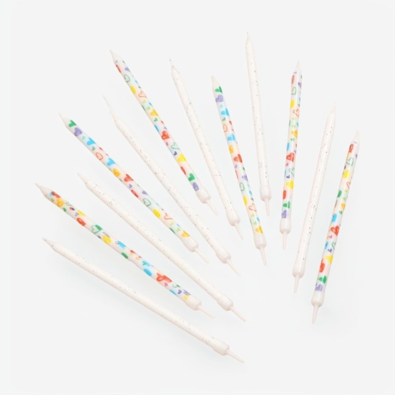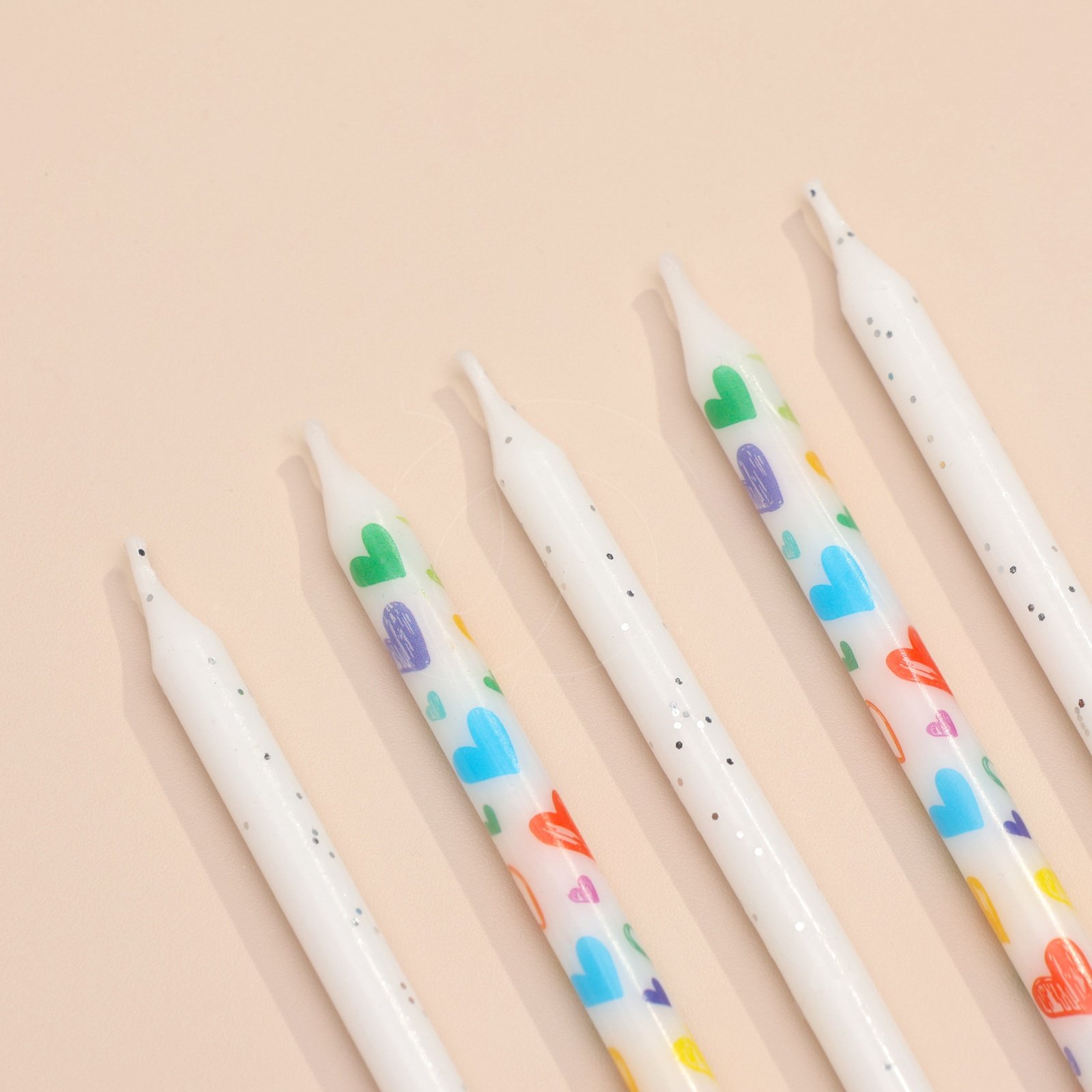 Свечи декоративные "Сердца и блёстки" 14 см 12 шт