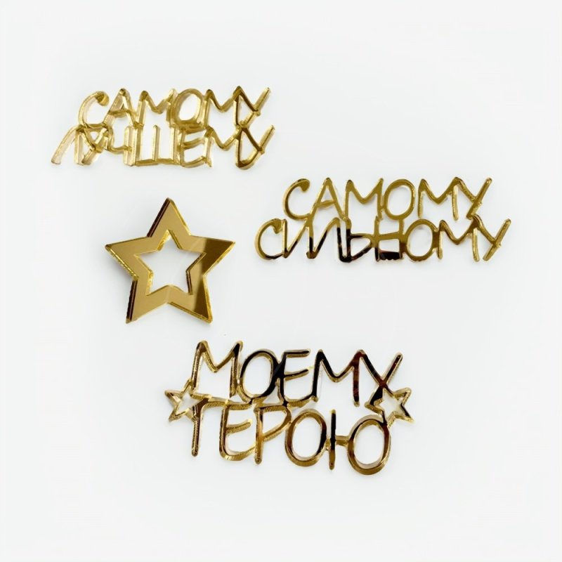 Набор топперов декоративных акриловых "Моему герою" Золото