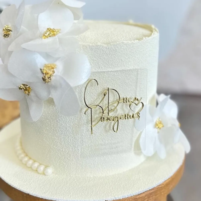 Доставка Топпер декоративный акриловый боковой "С Днём Рождения" Золото 9х7 см из магазина в вашем городе: