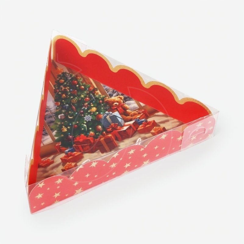 Доставка Коробка для сладостей с прозрачной крышкой "Ёлка с подарками" 18х18х4 см из магазина в вашем городе: